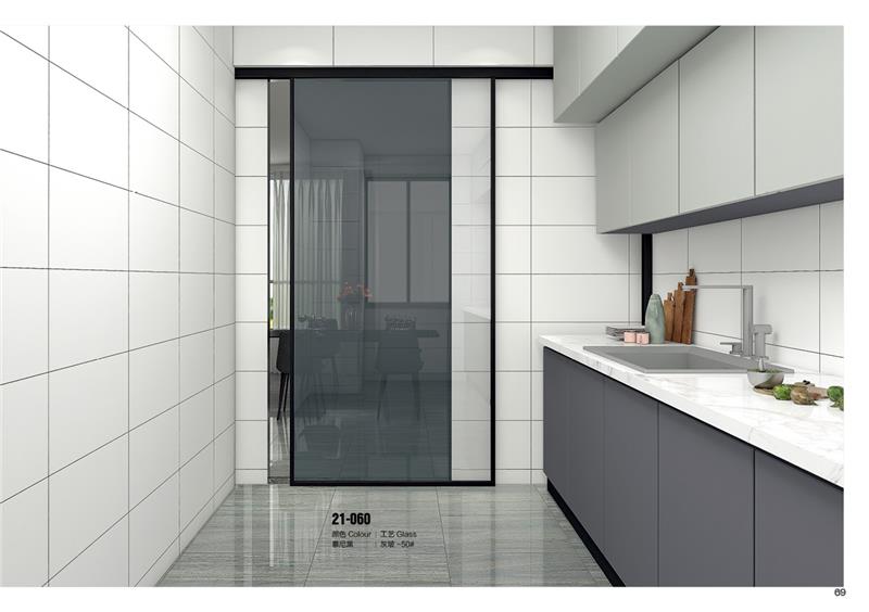 1、裝飾效果好。鋁合金廚房吊趟門(mén)可以做成各種顏色和造型,且表面光澤,框玻比例小,又可做成大尺寸分格,極具現代感和美觀(guān)大方,能為廚房物增光添彩。